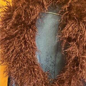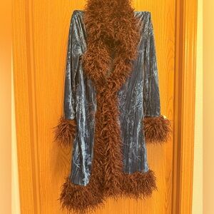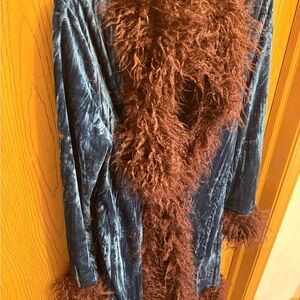 Macy's Blue Velvet Teddy Jacket with Brown Faux Fur Trim
