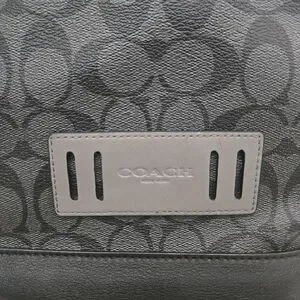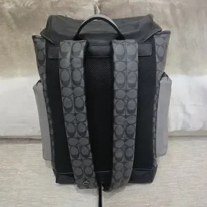 Elegant Coach Ranger backpack with signature pattern. Features sleek black and gray design. Ideal for daily essentials.