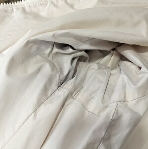 zip hand warmer and interior chest pocket, Stains on the lower half of parka as pictured also in the arm pits ,haven't tried to take out as I don't want to mess it up-price reflects this. No rips