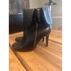 Coach Mackenna Size 8 High Heel Booties Boots Embossed Cuff Leather Black