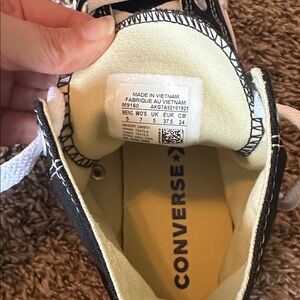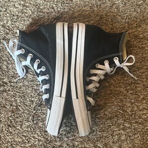 Black Converse high top Chuck Taylor sneakers with white sole and laces. Never worn, like new condition. Run slightly big. Offers welcome.