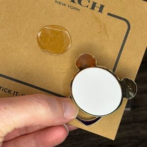 NWT and never used. Still has the original packaging and cover on its sticker. Gold with silver accents. Use as a phone ring or pull the “C” to be a phone stand.