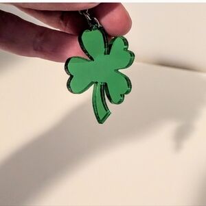 Stylish green clover-shaped earrings. Perfect for adding a touch of luck to any outfit.