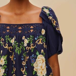 Farm Rio: Blue Flower Tapestry Yoke Blouse