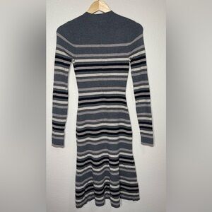Theory Canonical Gray Wool Blend Mock Neck Striped Sweater Dress Size Small