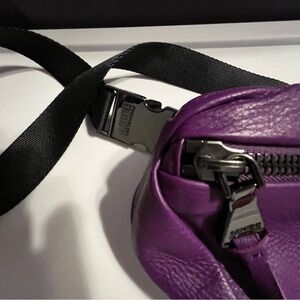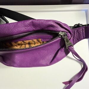 Chic purple crossbody bag with sleek zipper. Perfect for on-the-go style.