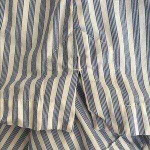 Stylish V-neck blouse with bell sleeves. Features classic blue and white stripes. Perfect for work or a night out. Used but in great condition!