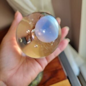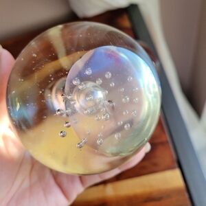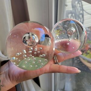 Set of 2 Art Clear Glass Paperweight Sphere Hand Blown W/Bubbles 3" / 2"