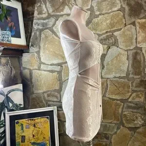 Outcast lace mini dress with a corset lace-up front and open back cutout. Super flattering fit with delicate lace details and a fully lined feel. Perfect for festivals, nights out, or layering for that Y2K vibe.