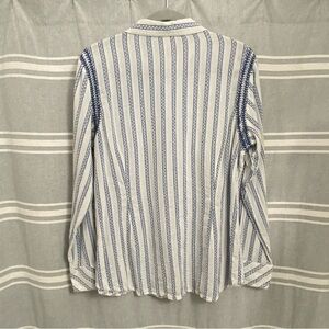 ARIAT / Blue and White Striped Embroidered Long Sleeve Button Down Shirt Size XL