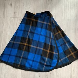 Vintage 1950s Pendleton plaid wrap skirt, offered in an excellent pre-owned condition. This charming skirt features a timeless blue plaid pattern, perfect for adding a touch of classic style to your wardrobe. It is designed to comfortably fit a size XS, offering a flattering silhouette that's both chic and comfortable. You'll love the versatility this piece brings to your closet!