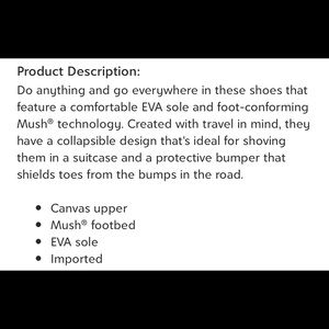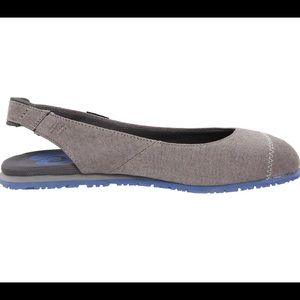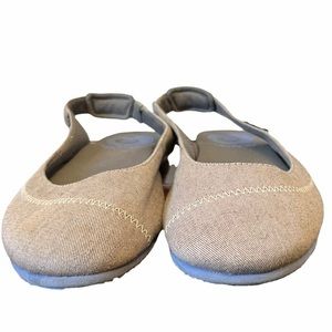 Worn once only so practically brand new. Eva sole. Valley stye flats featuring concealed gored inset on Slingback strap. Mush infused insole for comfort. Please see photos for full description. Size 8