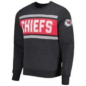 Color: dark heathered charcoal grey/black body with wide red chest stripe and bold white CHIEFS lettering across the front.