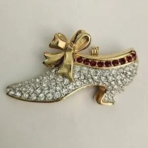 Vintage Swarovski White Red Crystals Brooch Pendant Retro Festive Bow Feminine