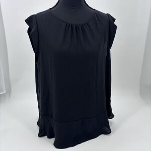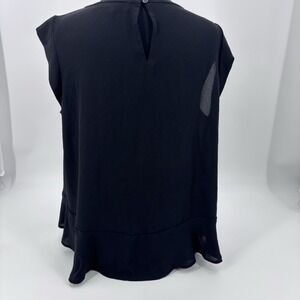 Ann Taylor LOFT Black Sheer Sleeveless Blouse Womens Size S Ruffle Office Siren