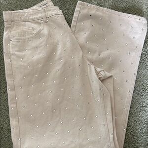 *Small spot on waistband * Anthropology Pilot Sparkle relaxedcream pants with a textured finish. Ideal for versatile styling. Waist 17 inseam 35.