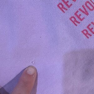 Please see photos for quality. One small hole on sleeve and a bleach stain. Not very noticeable while on and I think it gives it character 💜