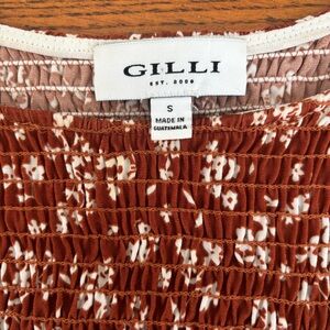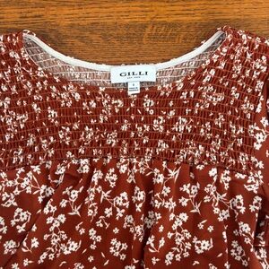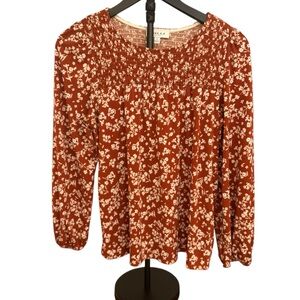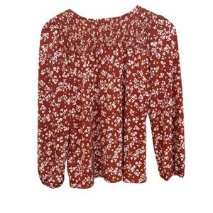 Gilli Rust Color w/White Floral Pattern Women's Small Top Nice Weight Oversized