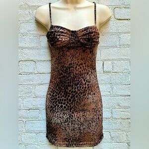Be ultra sexy and feminine in our Jemina dress. This fierce staple is a must-have for your wardrobe. It features a flattering bodycon fit with thin straps and fitted cups in a cheetah brown print. Dress it up with strappy heels and a mini-bag!