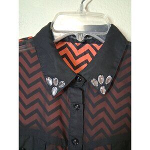 Dinamit Golden Jeans Sheer Blouse Boho Glam Retro Y2K Black Orange Sz 1X Women's