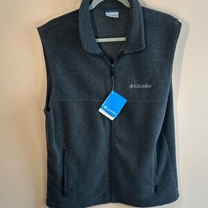 NEW Charcoal fleece Vest by Columbia. Features zip closure and side pockets.