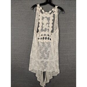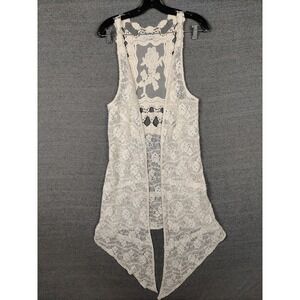 Haute Monde Womens Cardigan Small White Lace Crochet Long Duster Boho Festival