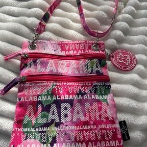 Stylish crossbody with bold Alabama print. Features vibrant colors and adjustable strap.