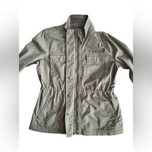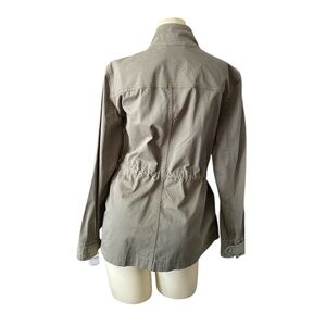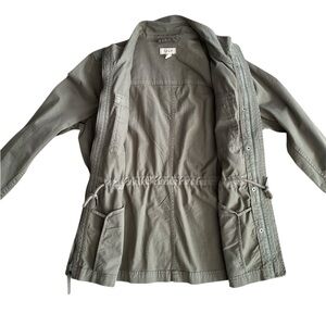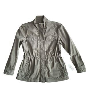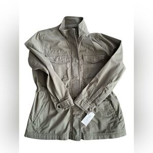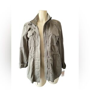 Style & Co women's twill utility jacket in olive drab, size small. Brand new with original tag. Stylish utility jacket with front pockets and button details. Pull string inside and pockets. Zipper up. Can pull drawstrings tight for more flattering fit or loosen or more loose fit. Snaps on cuffs to roll up. Love this jacket but already have two. Chic utility jacket with a drawstring waist. Features a high collar and front pockets. Ideal for casual outings. Measurements (approximate while lying flat - see attached photos). Please double check the measurements as there are no returns. No holds. Smoke free home. Please see my pictures for details color and condition as they are part of my description. What you see is what you’ll get. Color and appearance may vary depending on your monitor settings. Available as long as post is still up. ***PLEASE REMEMBER POSH TAKES 20% OF ALL SALES*** . ALL SALES ARE FINAL. NO RETURNS. PLEASE ASK ALL QUESTIONS BEFORE PURCHASING. NOTE: All items to be shipped are videotaped pre-packing and during packing for protection of Buyer and Seller. Mannequin is size small for reference.