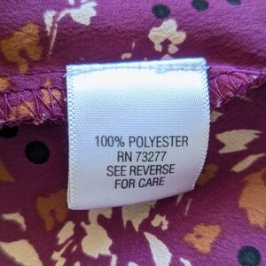 Elle Women's Small Burgundy Floral Blouse Top Office Feminine Ruffled sleeves