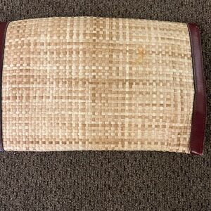 This stylish clutch features a sophisticated tan woven design with rich brown accents. Perfect for any occasion, it combines elegance with functionality.
