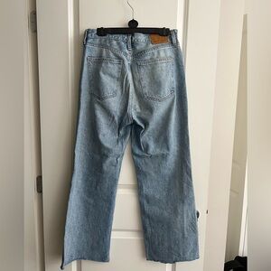 Classic wide leg jeans. Light blue wash. Timeless style.