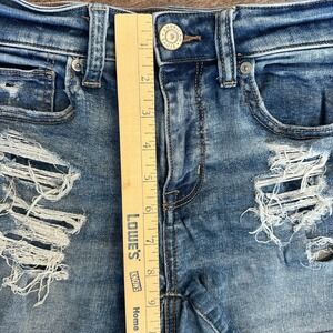American Eagle Mid Rise Next Level Stretch Denim Shorts Distressed Frayed Size 2