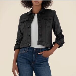NWT Kut from the Kloth Julia Coated Crop Black Jacket Size Medium