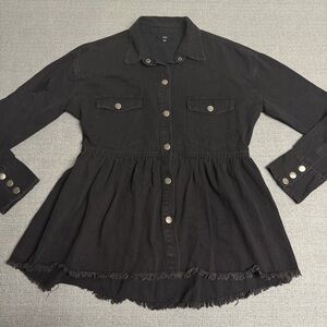 Fate Black Peplum Jacket. Size S. Black denim with distressed rips. Cross Posted.
