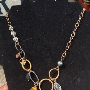 Chico's Gold and Black Necklace with Crystal Accents