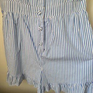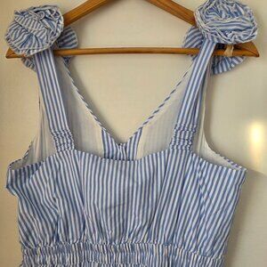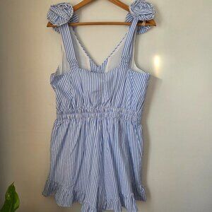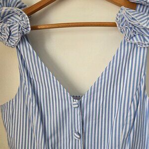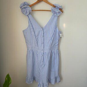 NWT SKIES ARE BLUE STRIPED ROSETTE SHOULDER V NECK BUTTONED ROMPER SIZE M