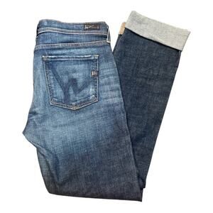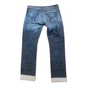 These Citizen Of Humanity jeans are in good used condition, showing no stains or rips. The classic medium blue denim and high-rise straight leg design make them a versatile addition to any wardrobe.