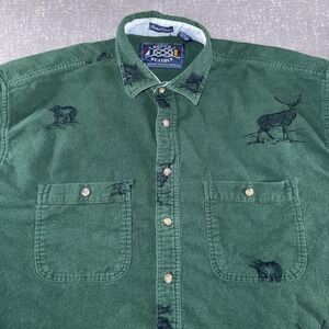 Vintage Gant Rough Weather Shirt Mens XL Green Blanket Chamois Hunting Deer Bear