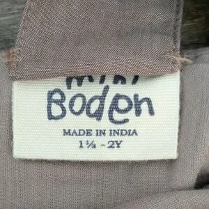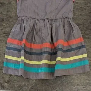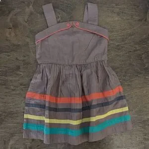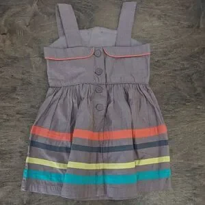 Cute Mini Boden dress for girls size 1.5–2Y. Brown with colorful stripes and orange button details. Great for summer or layering. Gently used and in great condition.