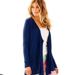 Lily Pulitzer Knit Cardigan navy blue cotton sweater size small Style 26537