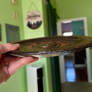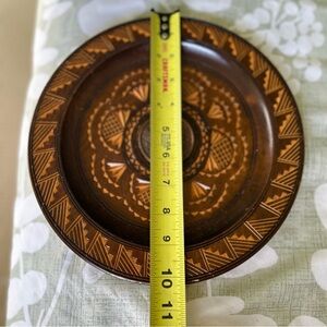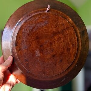 VTG Wooden Hand Carved Etched Round