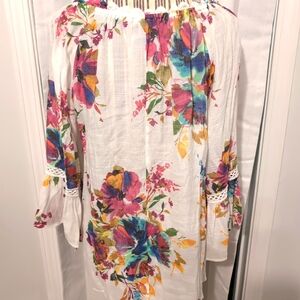 Spense Women's Bohemian Floral Tunic Top Tropical Flowy Bell Sleeves Size Large