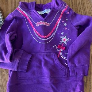 Bundle of girls' tops. red plaid top, a blue floral top, a leopard print top, and a purple hoodie. Carters, Hanna Anderson, jumping beans.