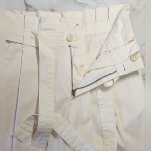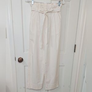 Everlane Cream Cotton Belted Paperbag Barrel Leg Pants, Size XS