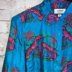 J.Crew Collection Lobster Print Silk Twill Button Down Shirt Size 4
