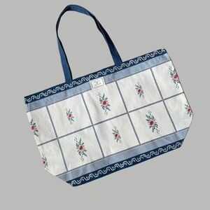 SEZANE x BAZISZT Blue Cream & Pink Classic Floral Printed Large Canvas Tote Bag