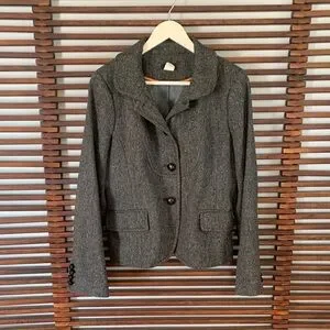 Elevate your wardrobe with this elegant gray wool women's blazer with brown buttons. Perfect for both professional and casual settings. Front pockets. Great condition. 💥Offers welcome💥