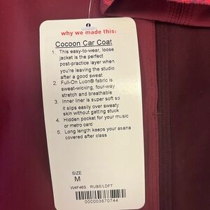 NWT Lululemon Women's Cocoon Car Coat - Burgundy Size Medium RARE FIND