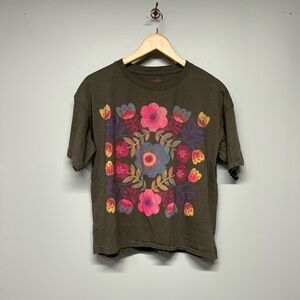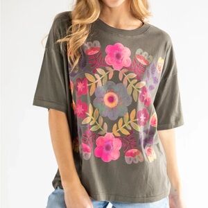 NATURAL LIFE REMI DISTRESSED OVERSIZED COTTON TEE FLORAL GREY SIZE SMALL