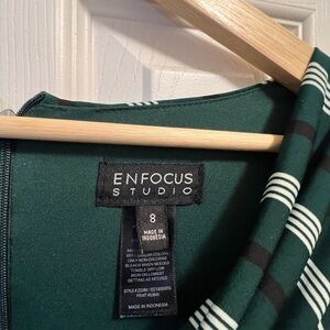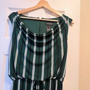 Enfocus Studio Dark Green and White Striped Jumpsuit
